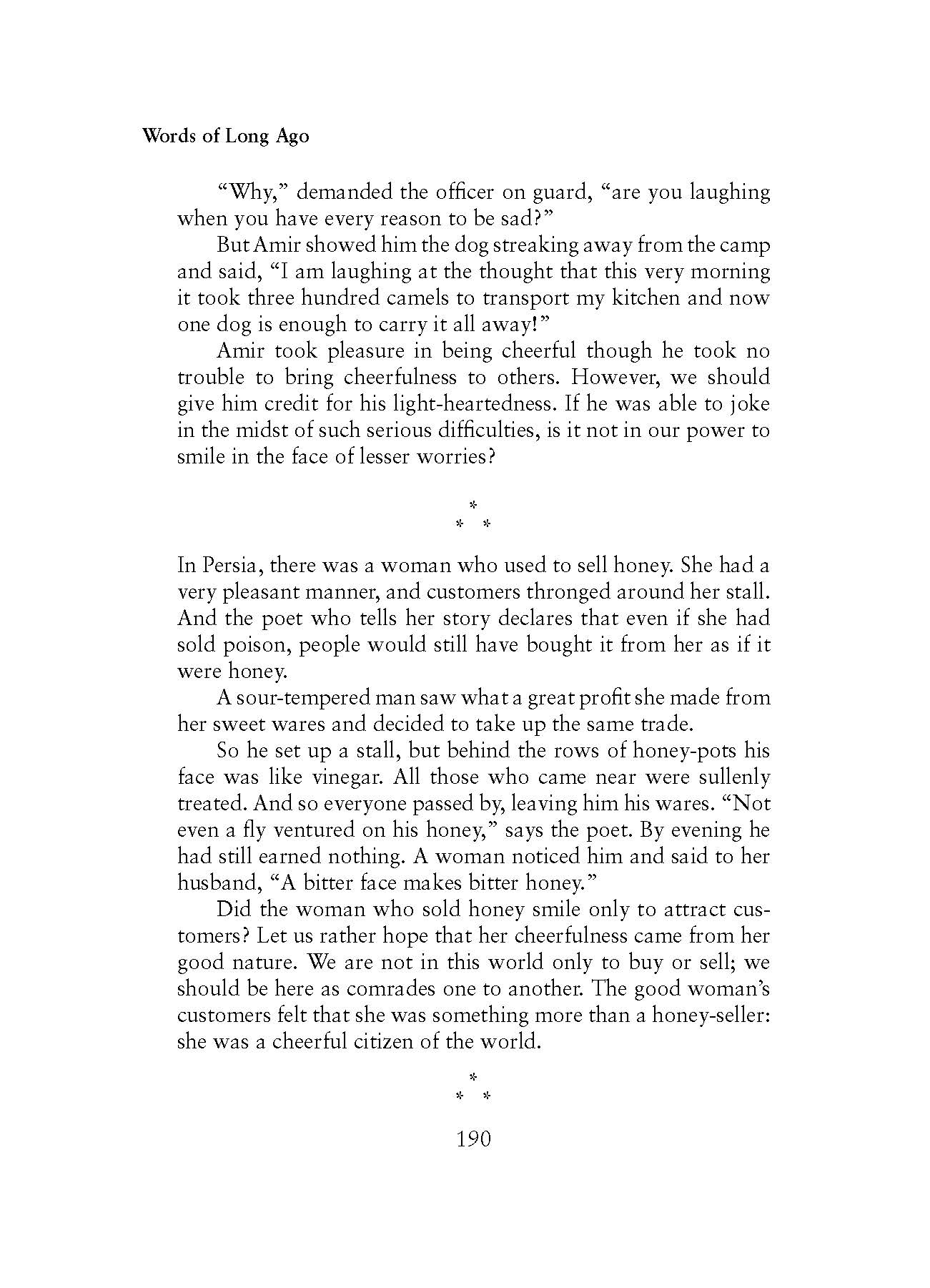 Did the woman who sold honey smile only to attract customers? Let us rather hope that her cheerfulness came from her good nature. We are not in this world only to buy or sell; we should be here as comrades one to another. The good woman’s customers felt that she was something more than a honey-seller: she was a cheerful citizen of the world.